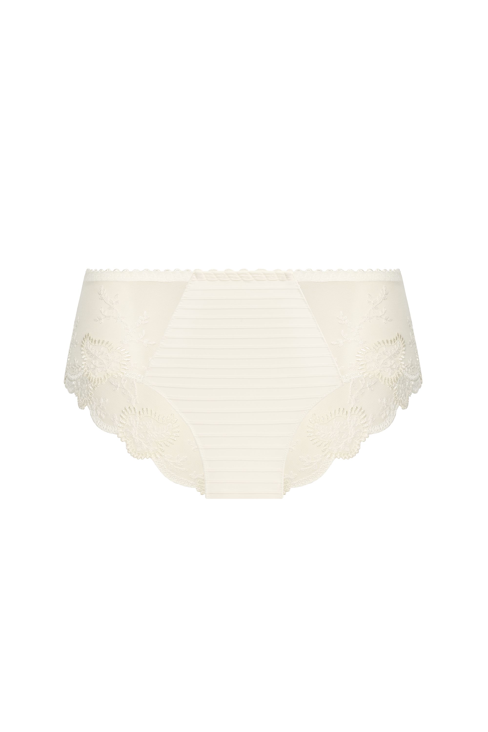 Élise embodies Louisa Bracq's essential elegance. Its iconic leaf embroidery, combined with a bi-elastic folded imitation mesh, offers a perfect balance between finesse and comfort. One of the historic lines of the house, always popular, Élise seduces by its refined style, its mastered simplicity and its timeless look. A must to rediscover season after season.