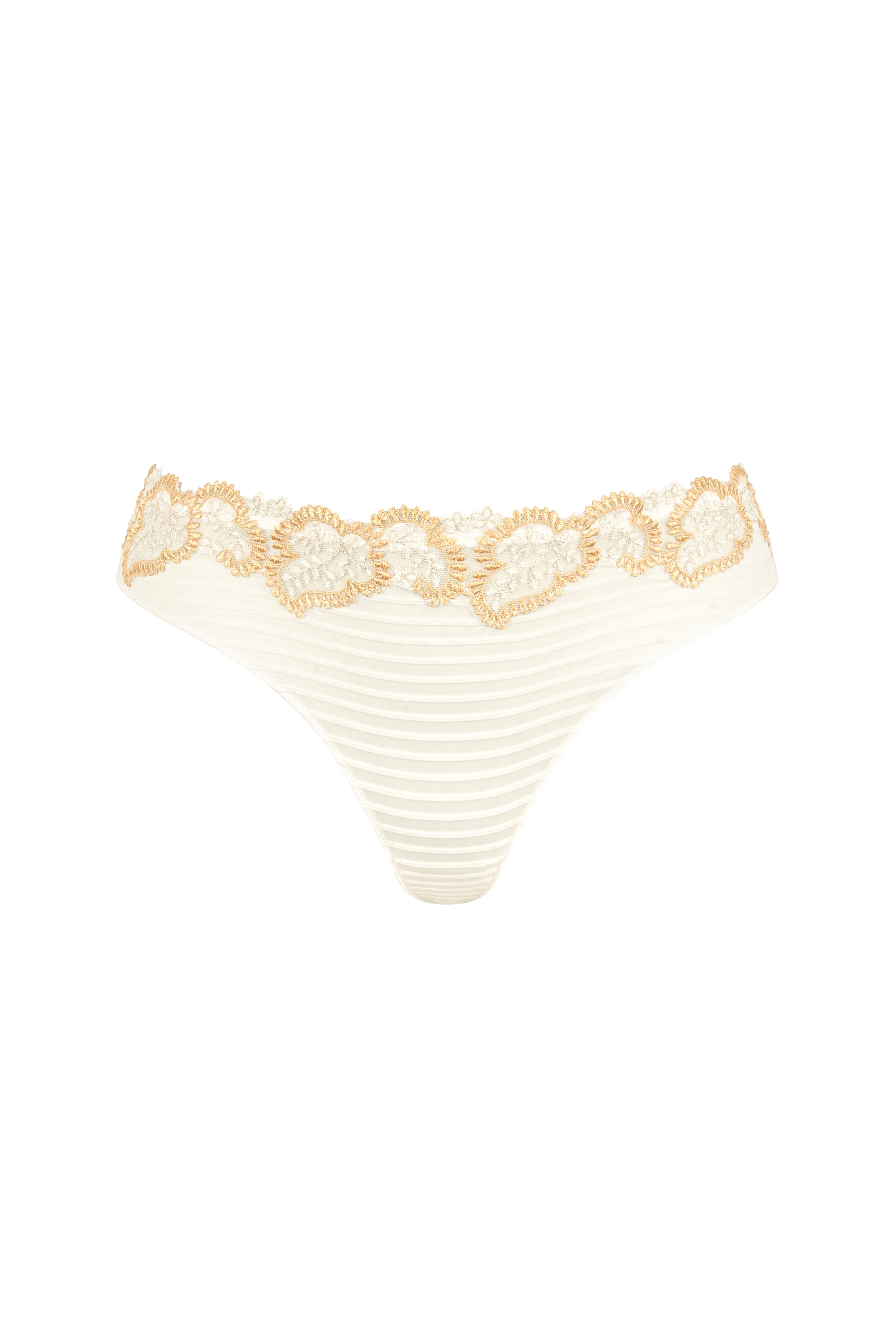 Élise embodies Louisa Bracq's essential elegance. Its iconic leaf embroidery, combined with a bi-elastic folded imitation mesh, offers a perfect balance between finesse and comfort. One of the historic lines of the house, always popular, Élise seduces by its refined style, its mastered simplicity and its timeless look. A must to rediscover season after season.