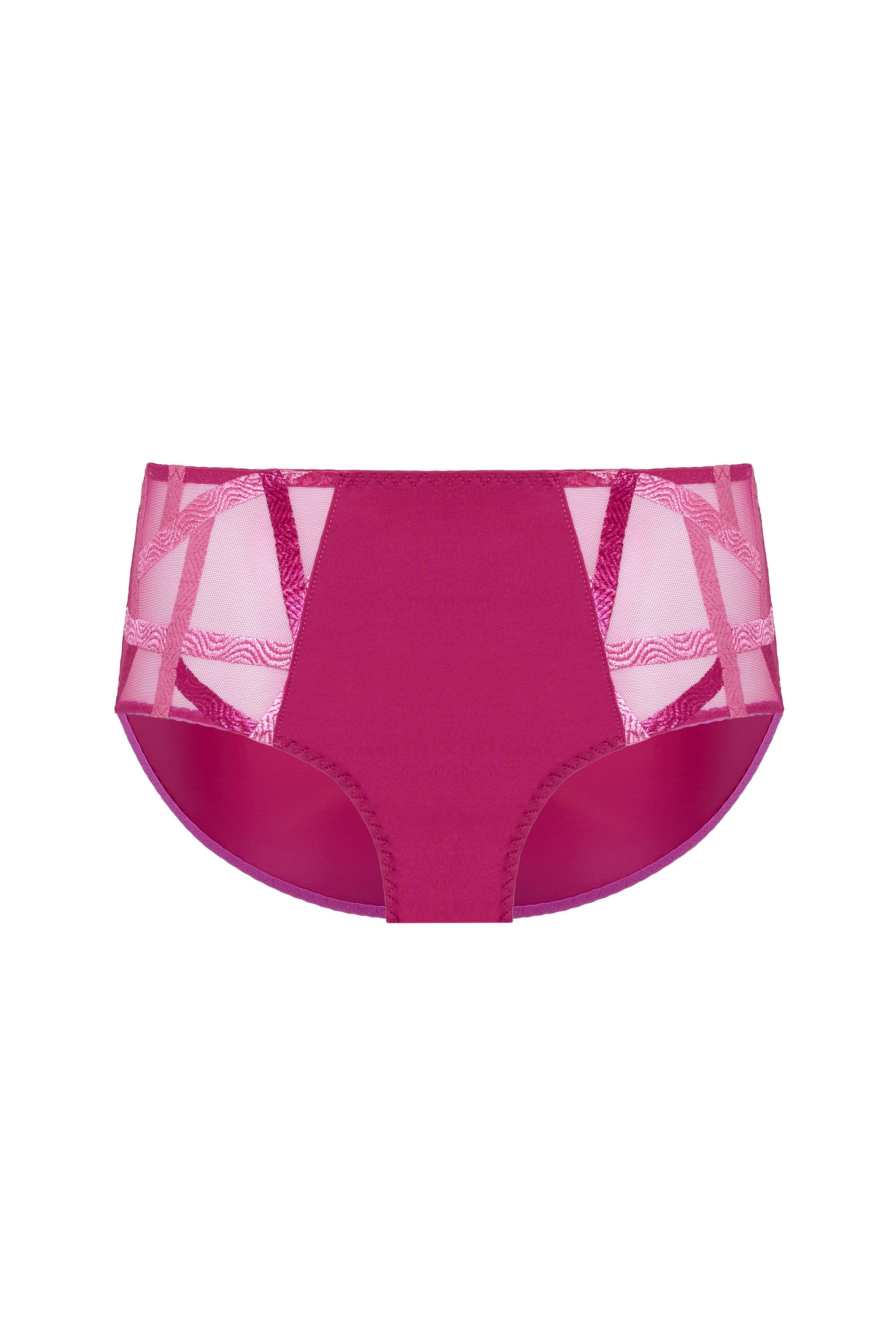 Série seduced by its geometric and very feminine look. The line combines an embroidery with chevron and vague motifs, reminiscent of leather straps, with a bi-stretch satin mesh for a graphic and sensual look.
