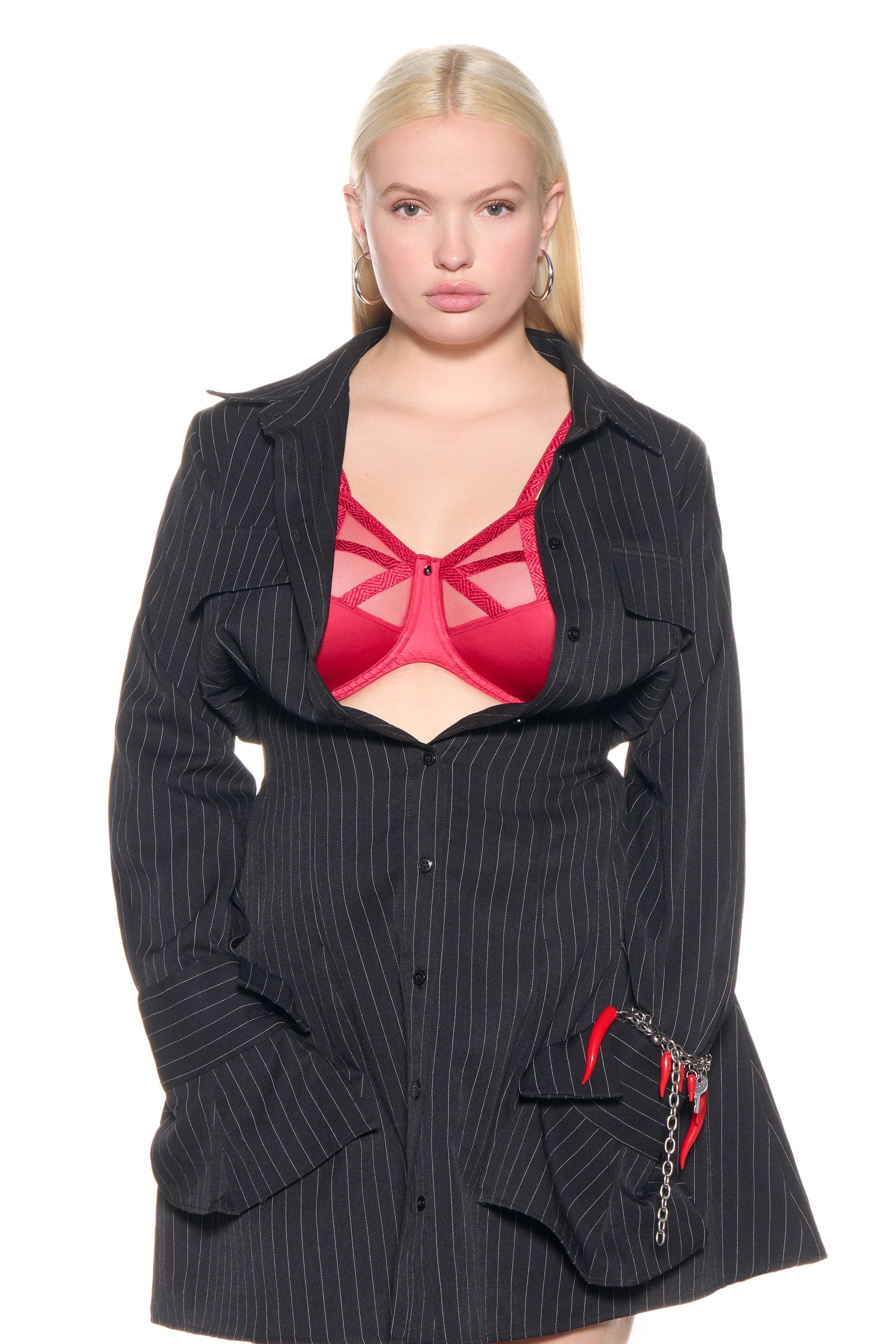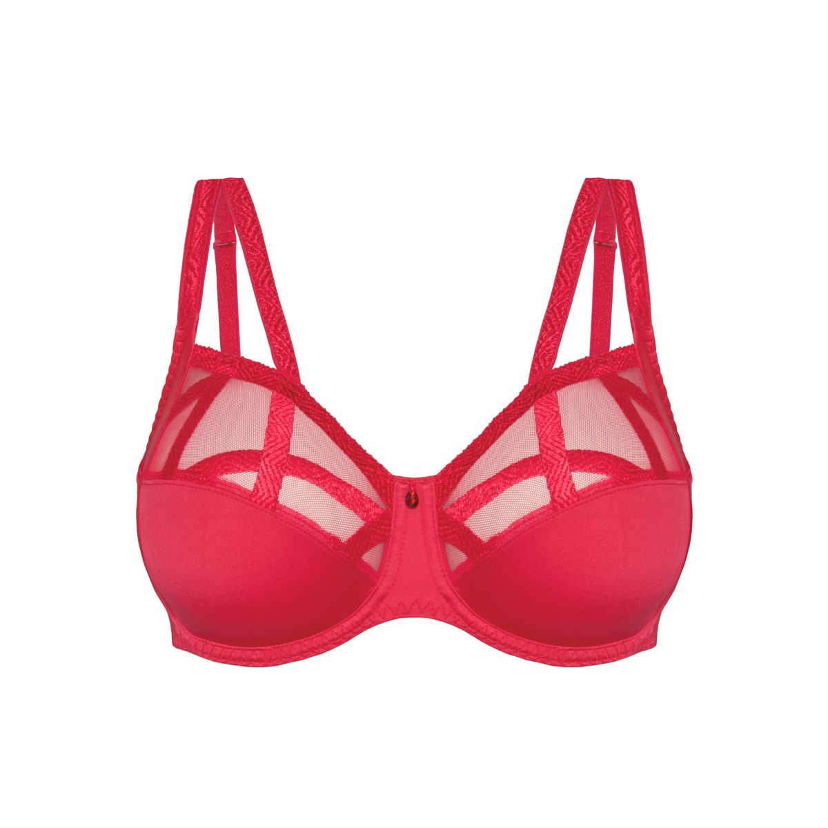 Série captivates with its geometric and very feminine look. The line combines chevron and wave embroidery, reminiscent of leather straps, with a bi-stretch satin knit for a graphic and sensual effect.