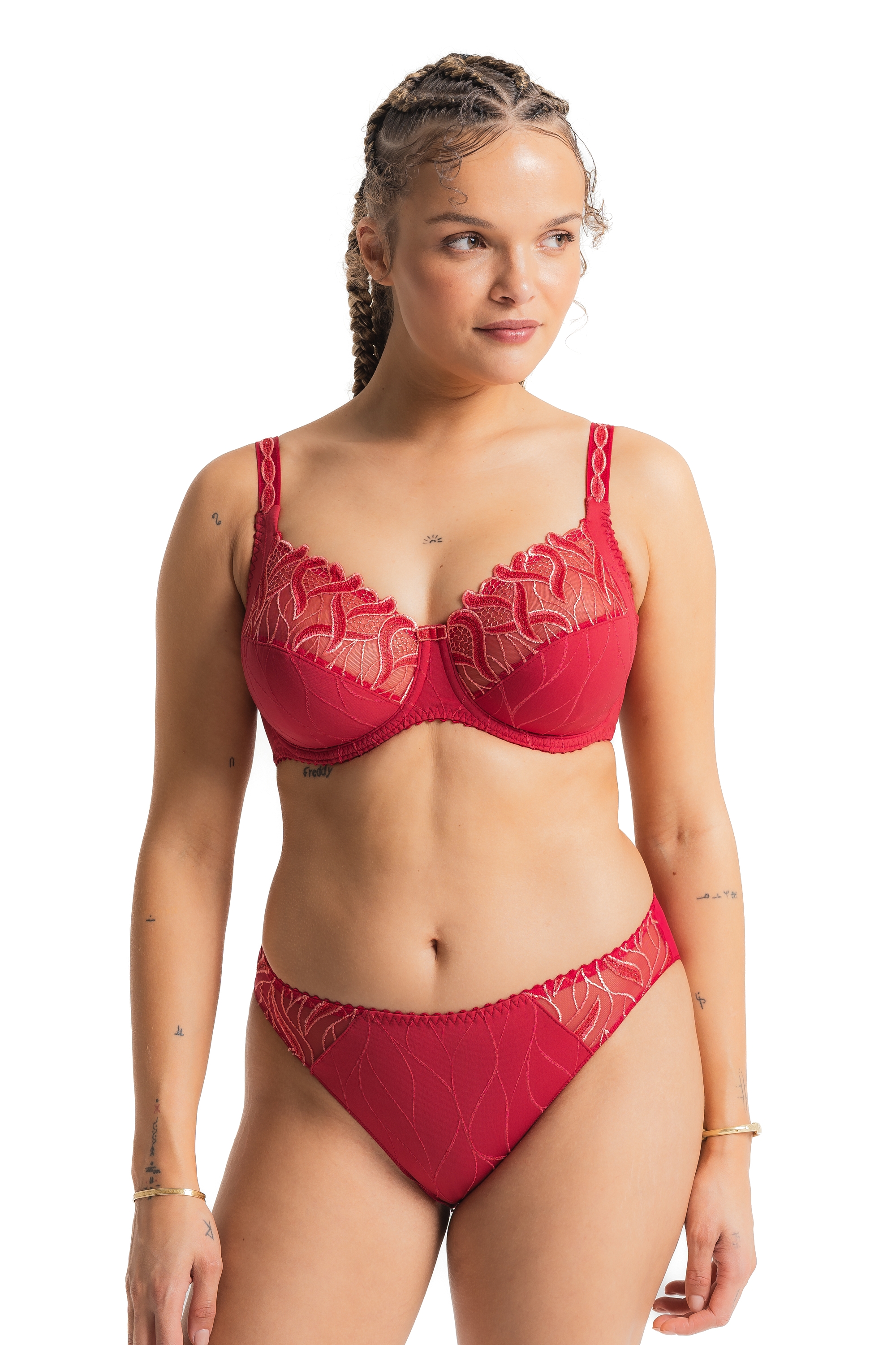 Julia sublime les courbes féminines grâce à une broderie aux lignes verticales flamboyantes et une transparence délicatement atténuée par un motif « nid d’abeilles ». Ce motif se prolonge dans un jacquard français tonique, garantissant maintien, confort et élégance. Une ligne grand maintien qui allie esthétisme et performance.