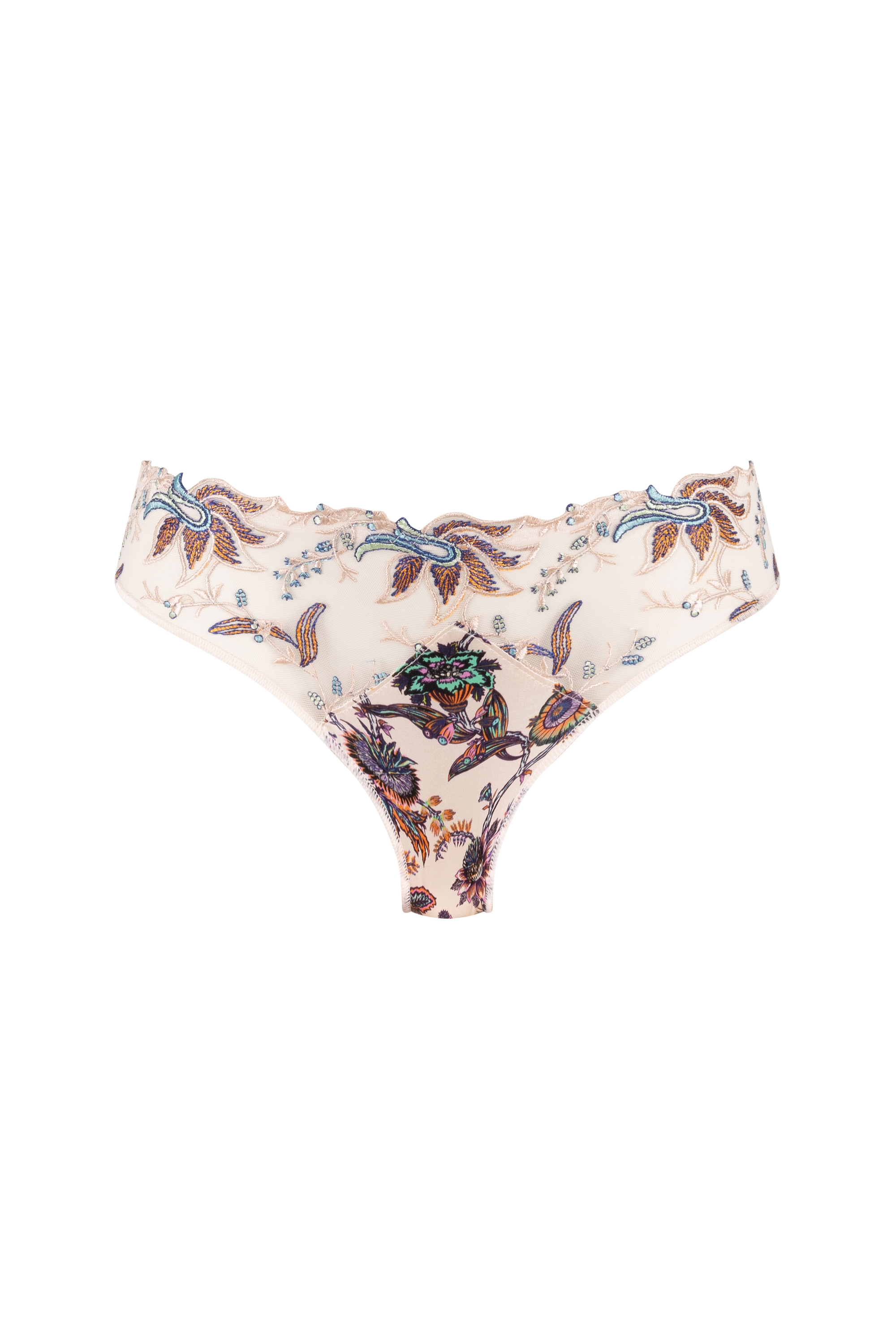Bybliss laat zich inspireren door de persoonlijke collectie van juwelier Victoire Castellane, Fleurs d’excès. Deze vegetale en florale lijn toont vleesetende, giftige of fantastische planten in een grafische stijl die doet denken aan een collage-effect. De exclusieve prints, ontworpen in het atelier, zijn gemaakt op stretchzijde en geproduceerd door Les Tissages Perrin, een historische Franse fabrikant en leverancier van Hermès voor zijden sjaals.